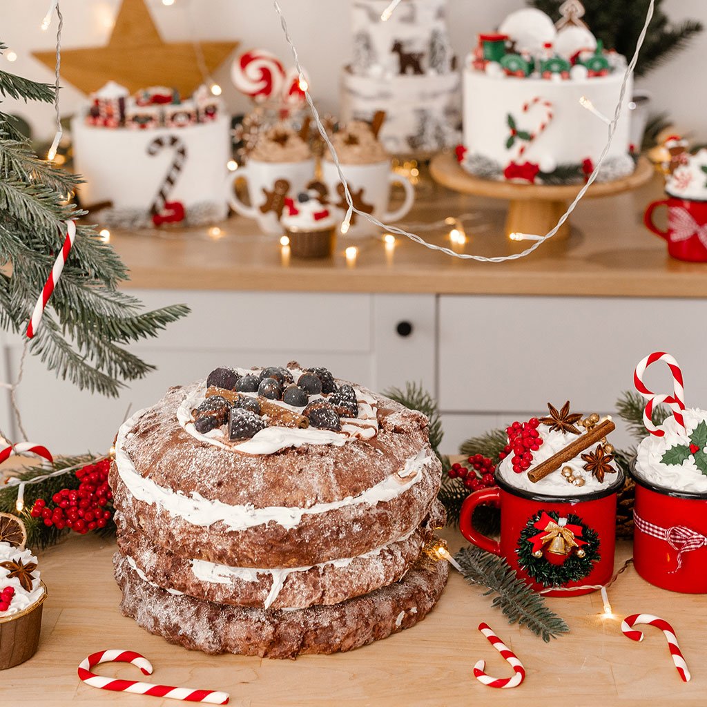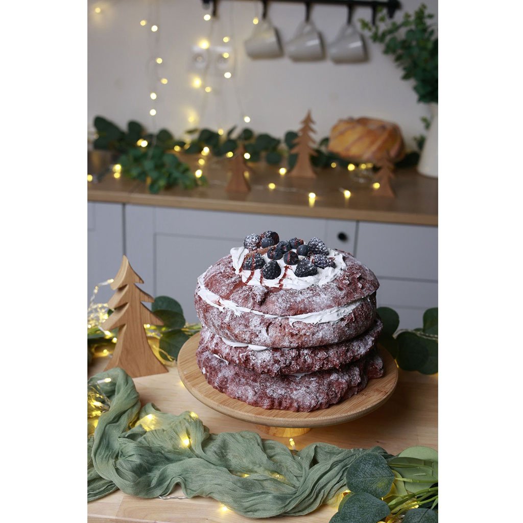 - Realistická maketa nadýchaného sněhového dortu s křupavou strukturou a jemnými detaily.
