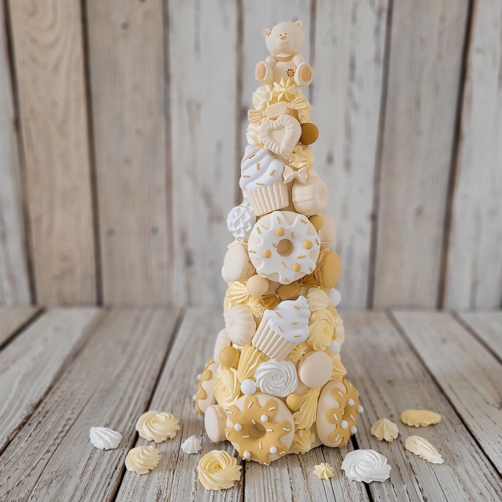 45 cm vysoká "Sladká věž" s rozkošným medvídkem nebo donutem, bude zářit na každé dětské narozeninové fotografii!